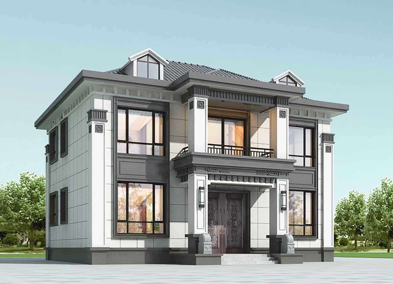 可克达拉005 两层新中式(11.36x11.76米)-【易设计】